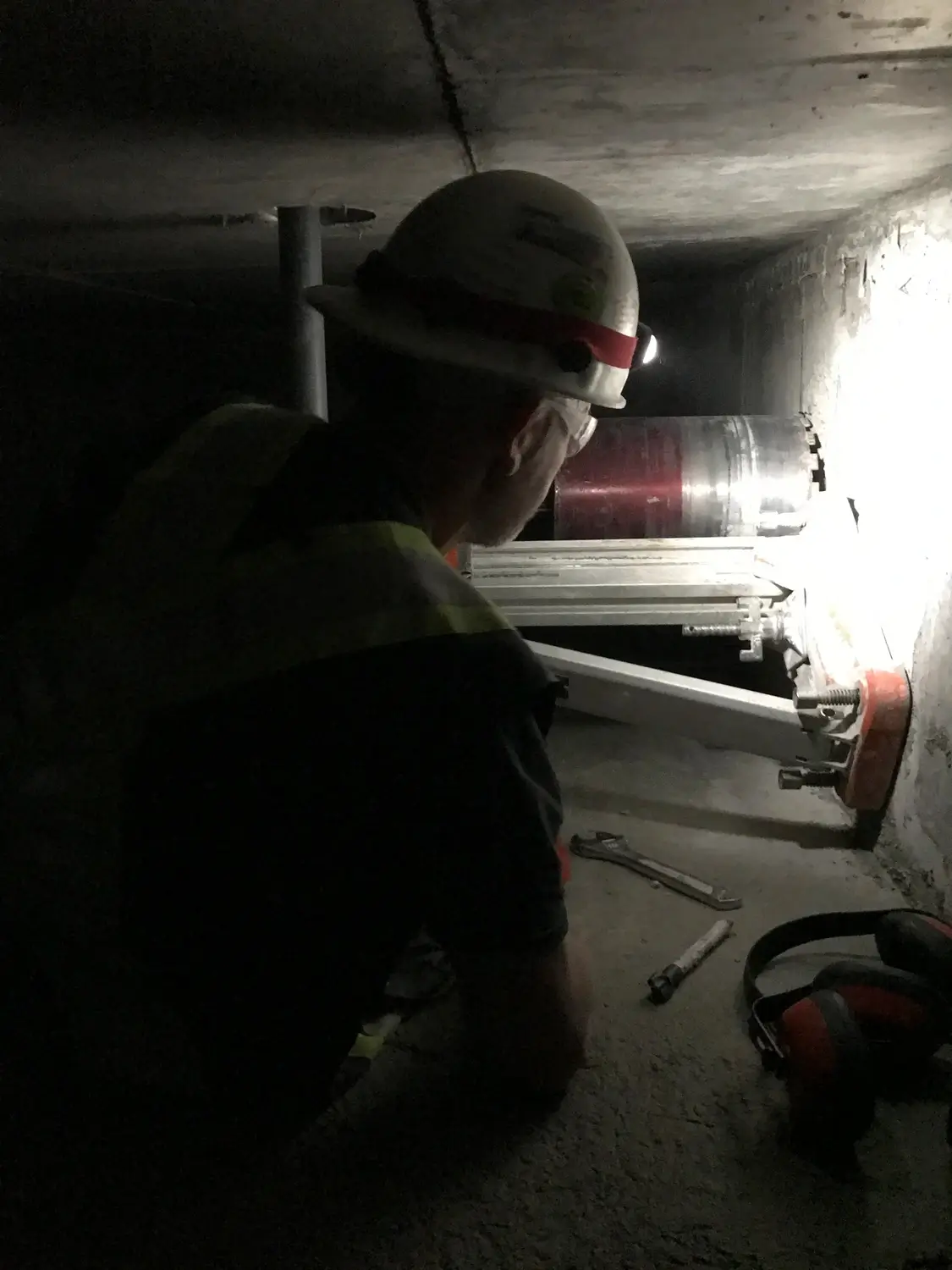 Core drilling is drilling a cylinder hole drilled in concrete or asphalt. The core bits are diamond-tipped cylinders. The sizes range from ½” diameter to any diameter. In our experience we have drilled anywhere from 1” depth to 6’ in depth. Concrete coring is the process of removing a cylindrical section of concrete from a wall or structure. Coring is most often performed on building walls, floors, and ceilings.